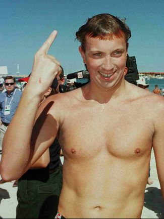 At the 2000 FINA World Open Water Swimming Championships in Honolulu, Hawaii, he not only coached the team (including the Russian 5 km gold medalist and the 25 km gold medalist), but he also personally swam to a bronze medal in the 25 km, just over a minute slower than the swimmer he was coaching.