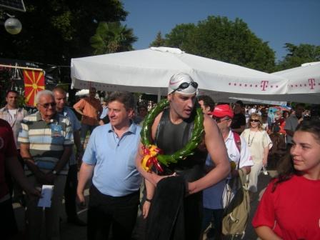 Petar told the FOCUS Information Agency, “I do not like to swim in a group. I managed to break from the others somewhere close to Pestani and kept my lead. I decided to swim alone so as to secure a victory, just like in the last couple of years. Every victory is equally important to me, no matter whether it is gained with a one-second or 50-meter lead” after being greeted by Macedonian President George Ivanov.