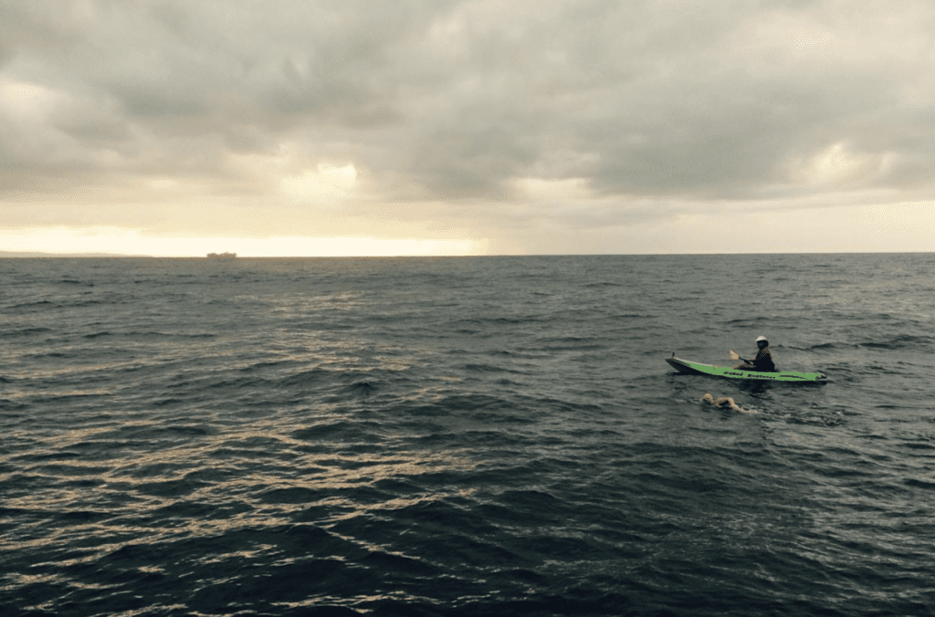Gorman’s crossing was supported by her fellow Triple Crowners Kent Nicholas (USA, MSF bio here), David Barra (USA, MSF bio here), Becky Jackman-Beeler (USA, MSF bio here), and Channel Swimming Federation observer Kelley Prebil, herself a Catalina Channel swimmer.