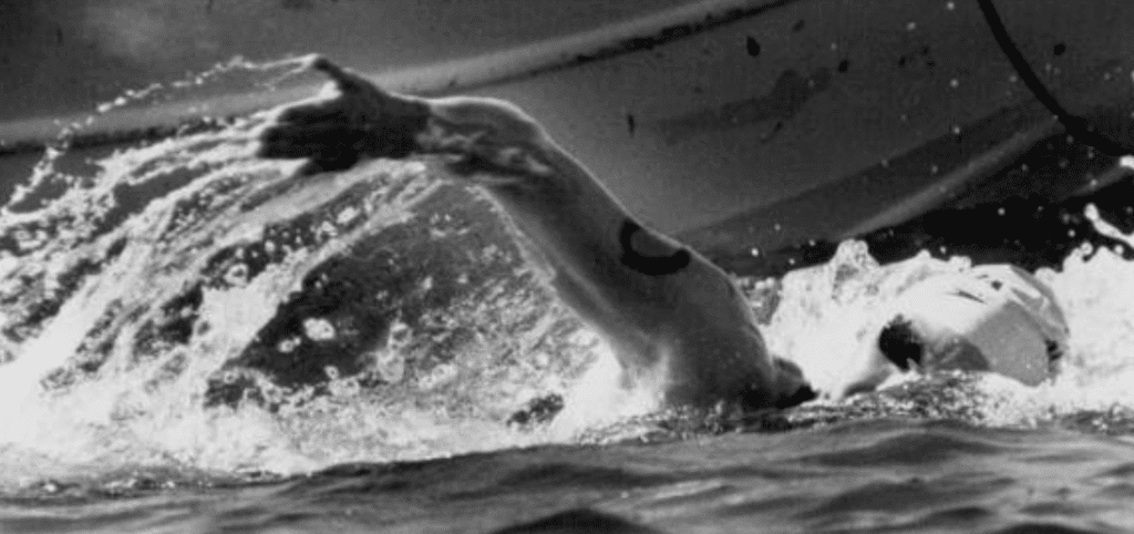 During the 1957 race, the conditions were terrible and only two swimmers out of 23 finished. Andersen won in 13 hours 53 minutes with England’s Kenneth Wray the only other finisher in 16 hours.