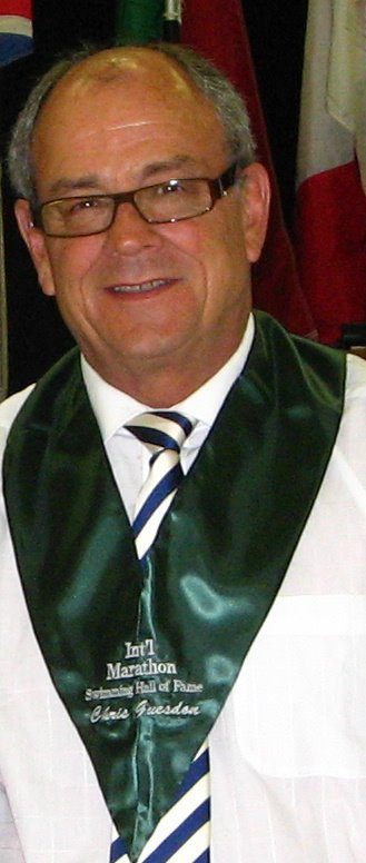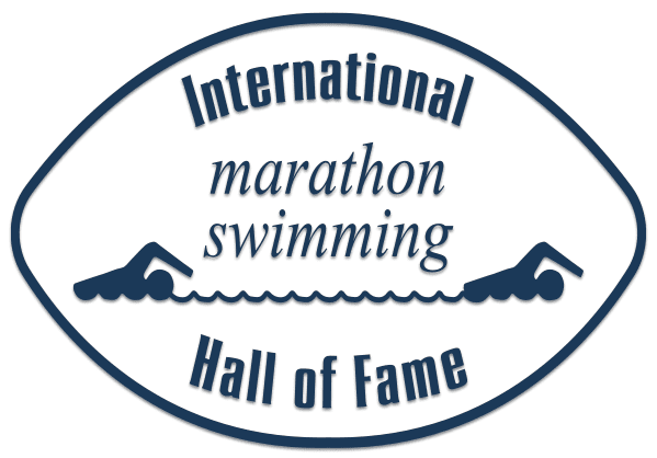 Chris Guesdon, chairman of the IMSHOF [shown on left], says, “Since 1963 aquatics’ peak body, The International Marathon Swimming Hall of Fame, has been recognizing superb marathon swimmers and marathon swimming contributors for seemingly unbelievable feats of swimming endurance, or organization ability from administrators.