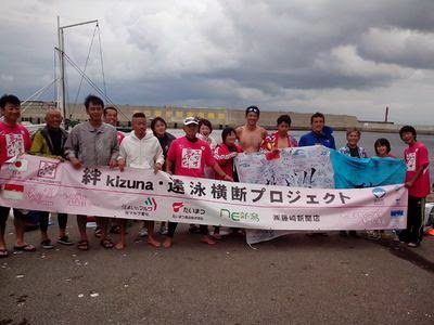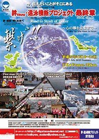 The Kizuna Enei Oudan Project includes 3 channel swims. The first is Niigata on the Japanese mainland to Sado Island across the Sado Channel, the second is between Aomori Prefecture and Hokkaido across the Tsugaru Channel, and the third is a one-way crossing of the English Channel.