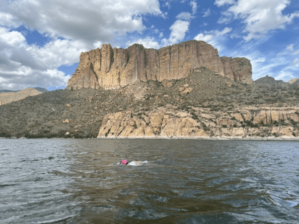 At the 2022 SCAR Swim Challenge in Arizona, the road between Canyon Lake and Apache Lake was washed out and being repaired. So escort kayaker Chris Morgan and I took a much longer route and ended up eating a dinner of hot dogs, popcorn, and beef jerky at a local gas station. We skipped breakfast on the day of the 22.8 km Apache Lake crossing.