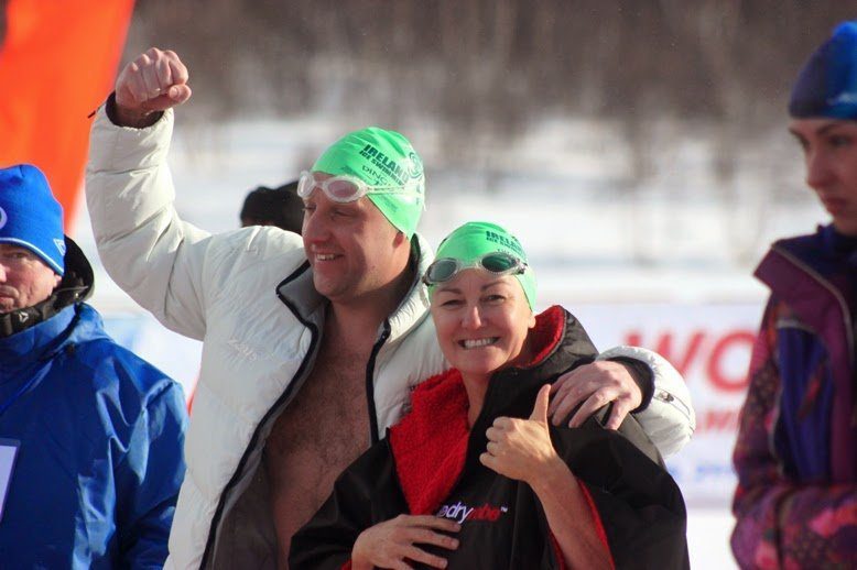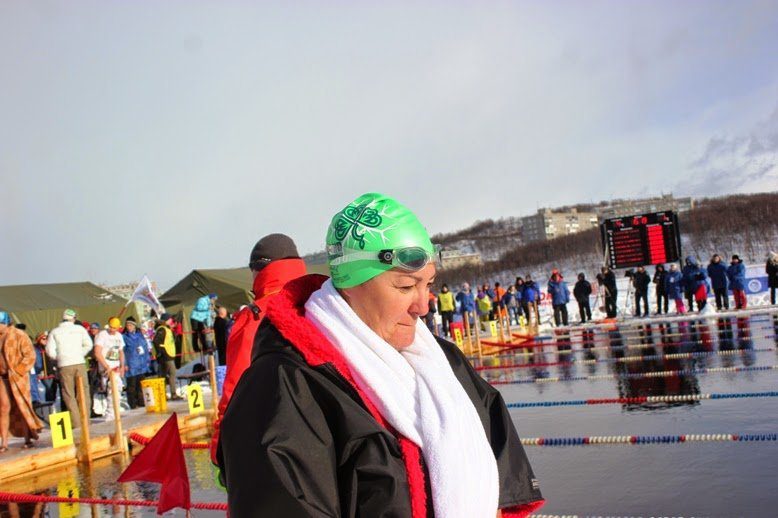 But nothing prepared her for the shock of ice swimming except for her own mindset and the camaraderie of the cheerful and supportive colleagues at the World Ice Swimming Championships in Murmansk, Russia. From her perch in Perth, the famed Australian marathoner, official and announcer “was a pure trooper…she took in all the atmosphere,” recalls Nuala Moore.