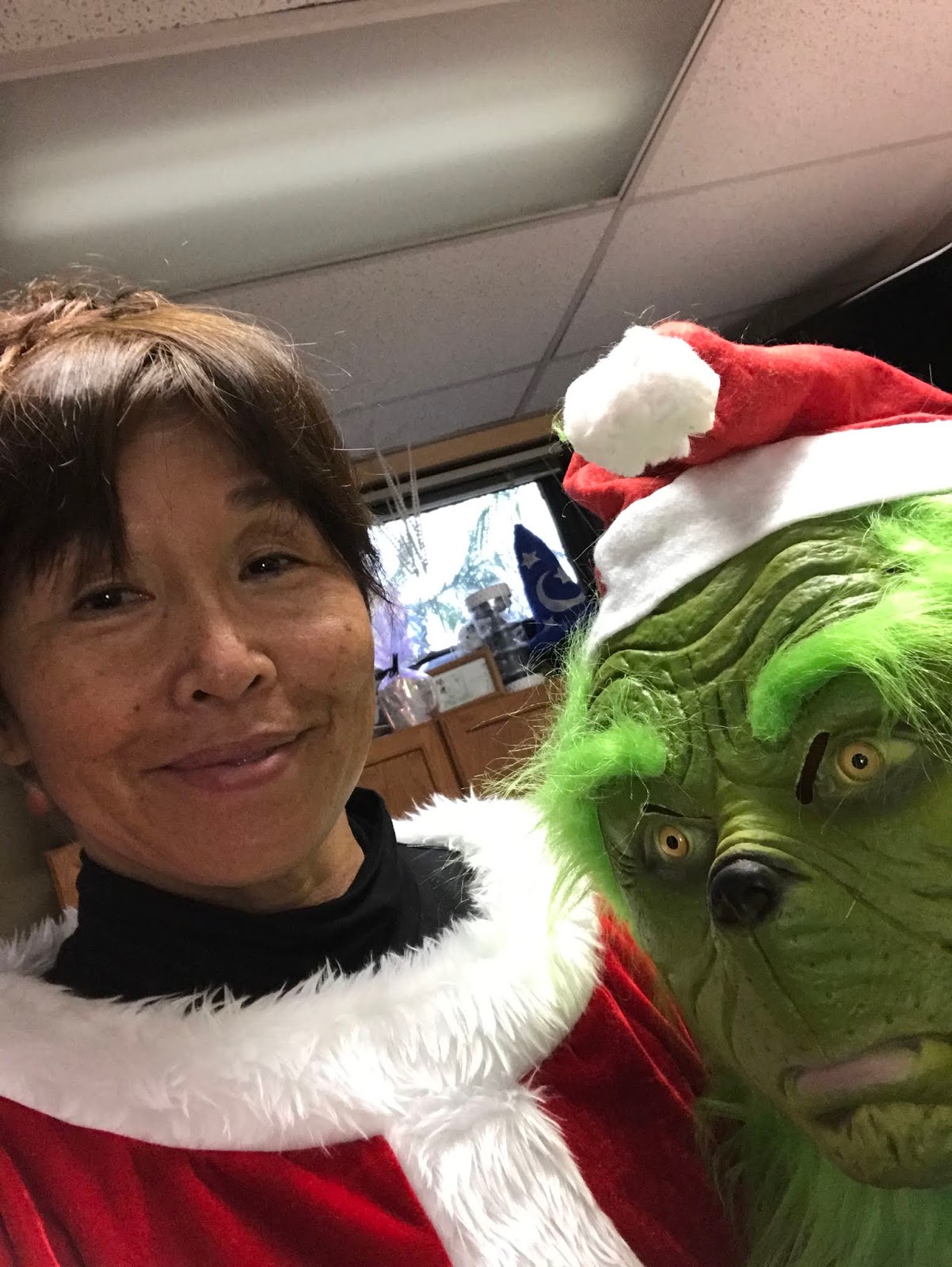 During the holiday season outside of the pool and open water, Matsuzaki has fun dressing up as the Grinch and entertaining the visitors to the Clarion Inn in Orlando, Florida where she resides.