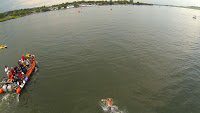 The battery-powered, remote-controlled Quadcopter can be launched from anywhere at the venue. At the 2013 Midmar Mile, owner-inventor Andrew Martens took the Quadcopter on the media boat and was able to capture outstanding images of the leaders and the field from above throughout the race.