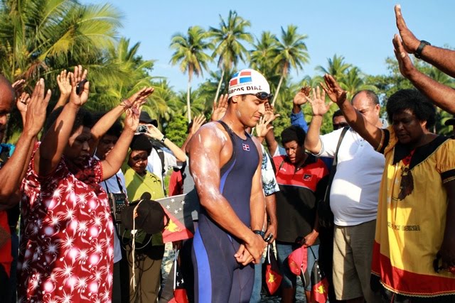 Our team has been warmly welcomed by the people of Papua New Guinea. There have been many expresions of happiness, hope and motivation for this swim is to bring attention to humanitarian matters that help countries like Papua New Guinea. It was hard to get the project organized, but it is worthwhile. I have received tremendous support by the goverment, sports groups, the media and the United Nations.”