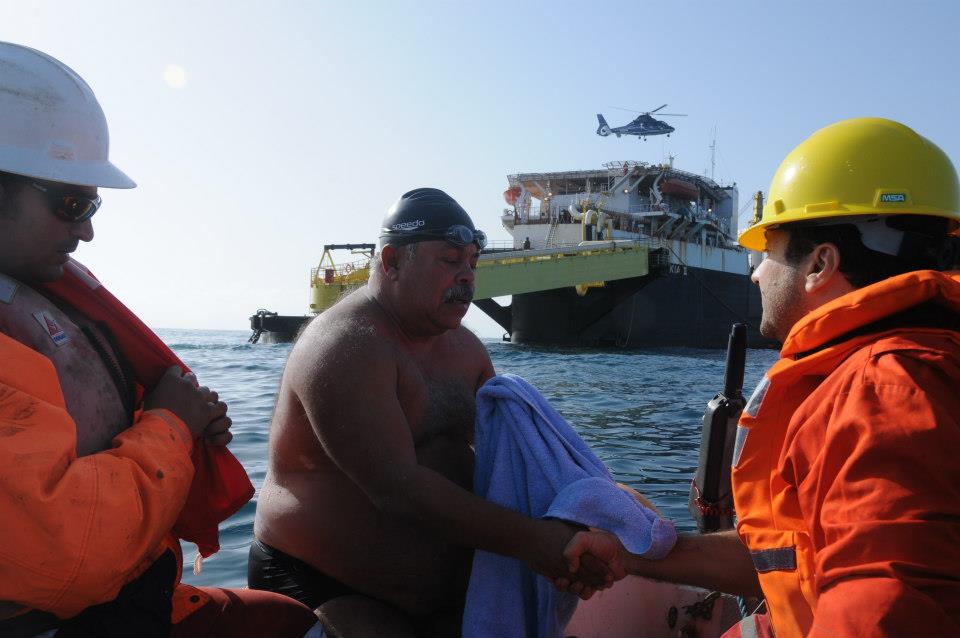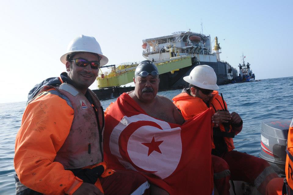 “I was happy to share this experience – the end of the 1400K Swim Across Tunisia – with the employees out on the platforms. We have a mutual respect for each other. They are proud of my swim to them as they work on the seas for Tunisia and our national economy. They are an example to hard-working people who come from all over Tunisia, a miniature representation of our country and its hope for a peaceful future.”