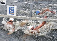 How close will it be? The individual country swim-offs can be as close as this shoulder-to-shoulder finish between Jessica Roux and Natalie du Toit of South Africa.