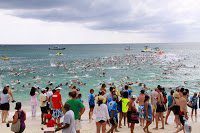 Under bright blue tropical skies and flat water, both Alex and Eva set event records as they took relatively straight lines from start to finish on Seven Mile Beach. “I am really tired. It was really hot,” said Alex who broke away early and used his 10K and 25K open water experience to pull away from the pool superstars, winning US$5,000 for breaking the event record by 1 second.