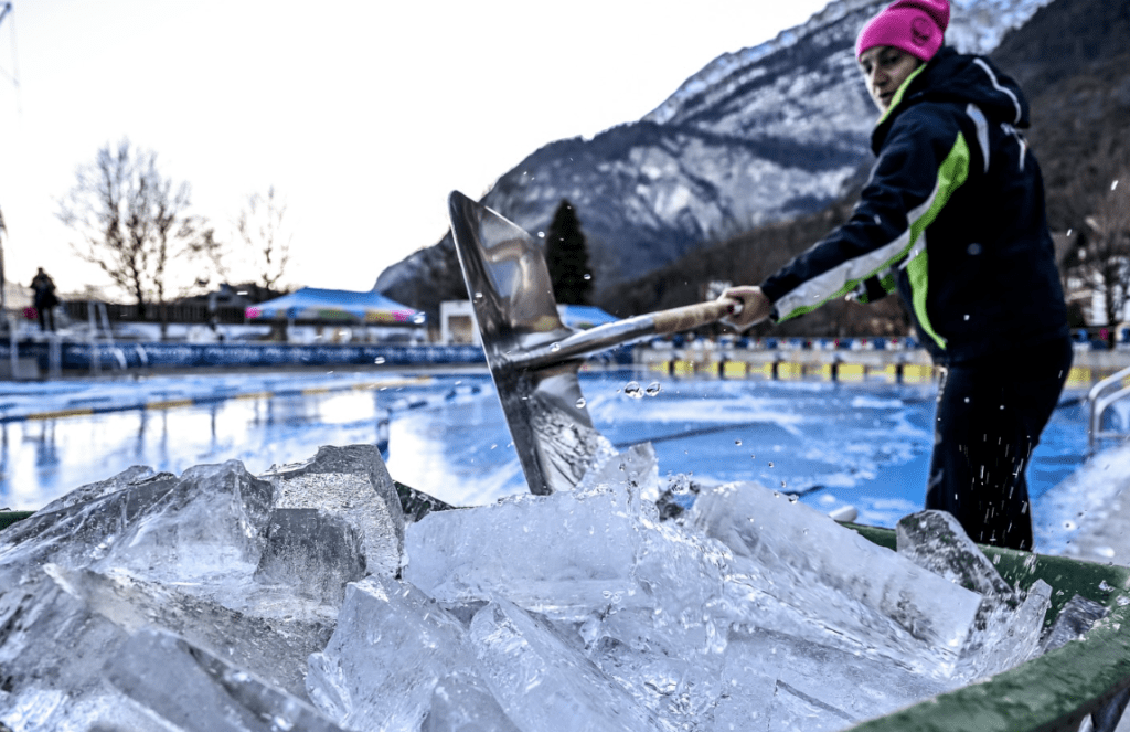 To say it is cold is clearly an understatement with the night air temperature at -1.1°C and the fresh water in the pool between 1.8°C and 2.0°C where the ice shards need to be removed from the pool before the 754 swimmers from 48 countries can compete.
