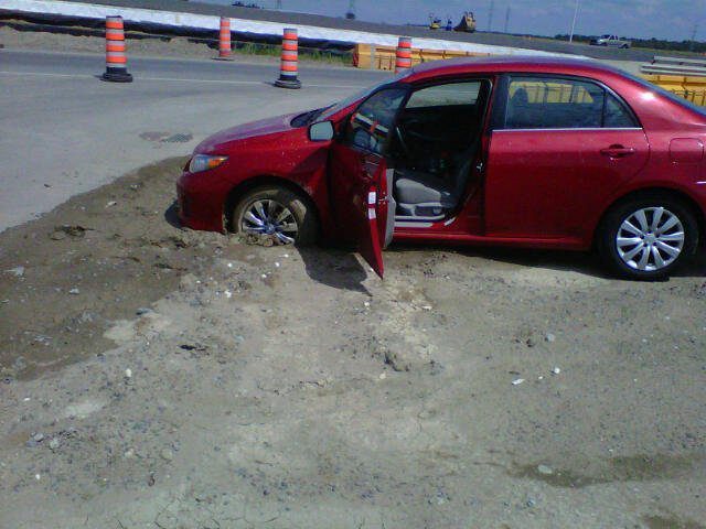 Soon, a tow truck was called and the car was excavated from its muddy pit. After getting pulled out of the mud, the swimmer and coach continued on their journal heading southward through Quebec to Magog. The swimmer was planning to participate in this week’s 34 km Traversée Internationale du lac Memphrémagog. But the car started to shake violently if they drove faster than 40 kph. So they got off the highway and started to look for an automobile repair shop as soon as possible, driving delicately through corn fields that spread themselves out as far as the horizon.