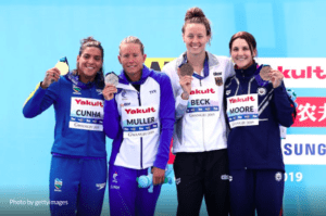 Moore is successfully transitioning her career to the open water from backstroke and freestyle events in the pool. She said, “This has by far exceeded my expectations. I really wanted to try and be top ten at my first world championships. This is my first international 5 km so I didn’t really know what to expect.