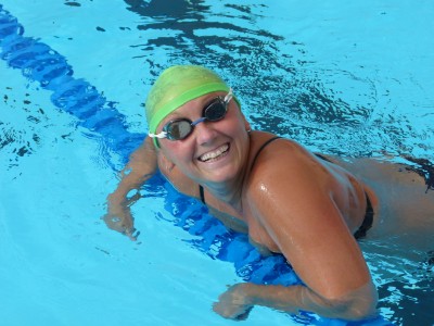 She tries to swim 10 – 12 km a day, but primarily configures her swims in terms of hours rather than distance. “I like to do 3 hours a day,” she explains. “I also swims in another lake where I can swim a straight-line 4 km out and a 4 km back. My father kayaks with me during this training as my parents live nearby.”