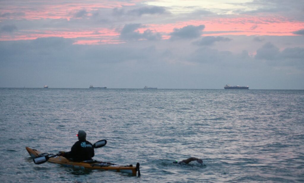 She kept to her plan as she reached Ventnor by midnight before the tide turned. But then she faced the tidal flow demons for the next six hours, swimming against the tide in the pitch darkness. However, with a fleet of support boats providing her some nocturnal reconnaissance, she was able to find the weakest currents close in shore that allowed her to make some progress overnight. She was able to reach Sandown Bay before the tide turned in her favor again.