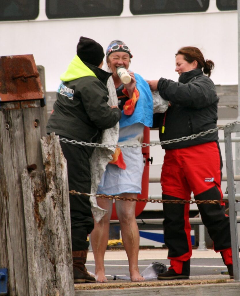 After the swim and 2-year effort, Wardley was gracious to all, “Thank you to all my supporters, especially the residents of the Isle of Wight who came out all the way round the course.