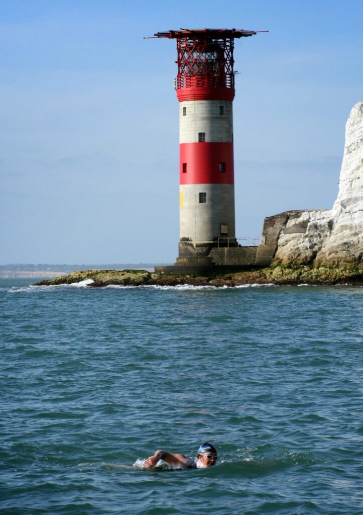 After a great first half, she reached St Catherine’s Point on the south side of the island under favorable tides an hour ahead of schedule. Wardley had predicted before the swim, “I see The Needles down around St Catherine’s to Ventnor as the make or break part for me.