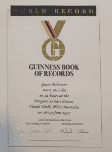1997 24-hour marathon swimming record for continuous swimming which is still intact today 23 years later of 101.1 km in 50m pool