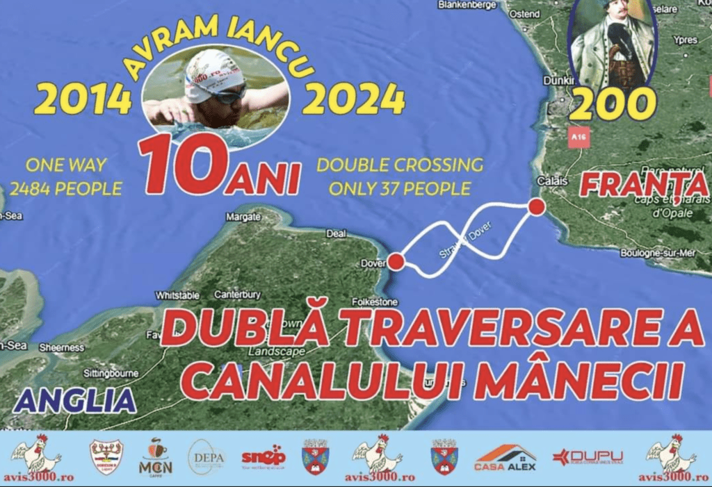 The modern-day Iancu explains the purposeful coincidence of his attempted two-way 67 km crossing and the Year of Avram Iancu, “I have been in Dover for over a month to mark this historic moment with a special swim to live up to the anniversary moment. Today, on Wednesday August 28th at 2:40 am (UK time), I will start a double crossing of the English Channel. I will be escorted by the Sea Satin piloted by Lance Oram and Tanya Harding in a crossing organized by Channel Swimming & Piloting Federation.”