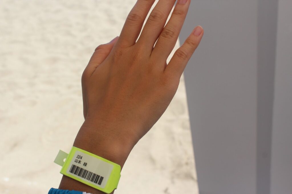 But at the Japan International Open Water Swimming Association events, bar codes are used. The bar codes are attached at the wrist and then scanned at the end of the race. The position, by gender and age-group, is then tied to the each swimmer and their specific times.