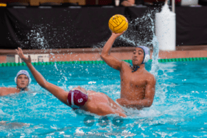 Skyler Munatones at the 2018 NCAA Final Four semifinal game vs. Stanford University’s and 2016 USA Olympian Ben Hallock, published in Swimming World Magazine