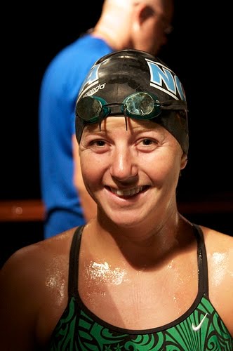 Photos above show Jen before and after her Catalina Channel crossing of 9:02.