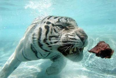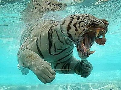 But there is a special mention: the bengal tiger. Photographed swimming in an aquarium, they are good swimmers, especially when going after a meal.