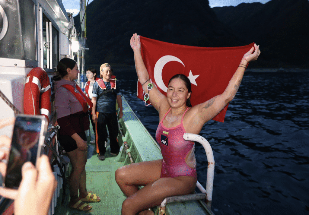 Among the 40 Oceans Seven swimmers, there have been swimmers from Ireland, Sweden, USA, Great Britain, New Zealand, Mexico, Moldavia, India, Czech Republic, South Africa, Australia, Germany, Hungary, Spain, Guernsey, Croatia, Scotland, Chile, Romania, Bulgaria, Peru, and Brazil – but never Turkey until this week.