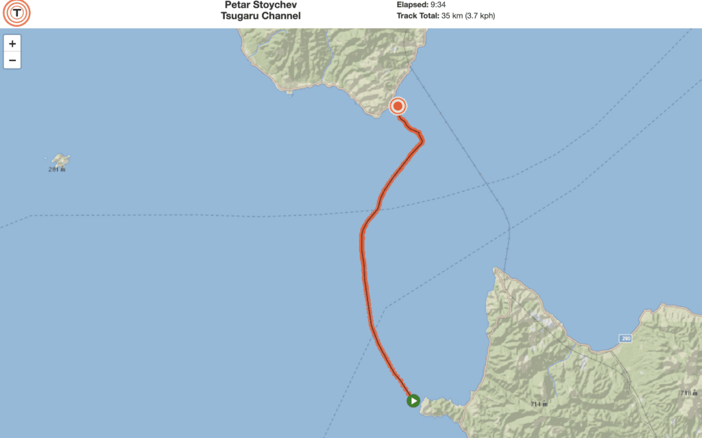 Stoychev was literally swimming against the current, but was being pushed parallel to his goal. He continued to swim – or tack – against the current until he found an opening and was able to swim straight to the Hokkaido shore.