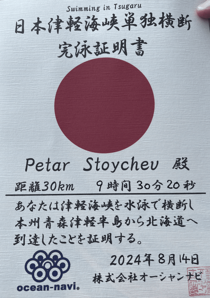 International Swimming Hall of Fame and International Marathon Swimming Hall of Famer Honor Swimmer Petar Stoychev could not help staring at the Windy app on his smartphone. The 47-year-old Bulgarian professional marathon swimmers wondered all day and night when and how he could attempt a crossing of the Tsugaru Channel in northern Japan.