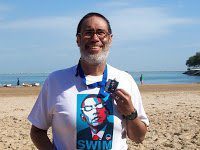 With the official t-shirts and medals bearing the likeness of President Obama, Big Shoulders in Lake Michigan immediately stirred up a shark’s frenzy judging from the thousands of comments in the U.S. Masters Swimming forums.