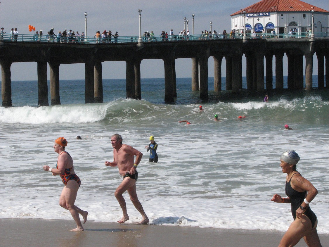 Gerry provided additional tips on how to swim well at this weekend’s Dwight Crum Pier-to-Pier Swim in Manhattan Beach, one of the more fashionable beach areas in Southern California and one of the most ideal open water swimming beaches in America, where the water temperature is currently 63-65°F.