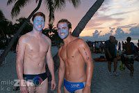 Photo of Blue Men Joshua Ashley from Jacksonville, Florida and Rob Kent from Ontario, Canada at Smather’s Beach is courtesy of Mile Zero Photography