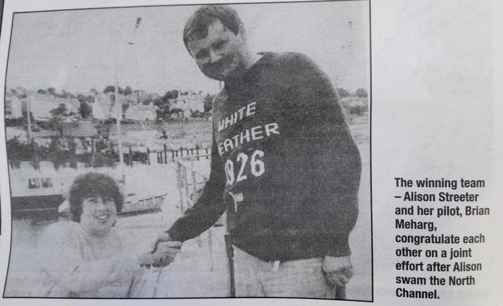 Alison Streeter MBE became the first person to swim from Scotland to Northern Ireland in 1989.