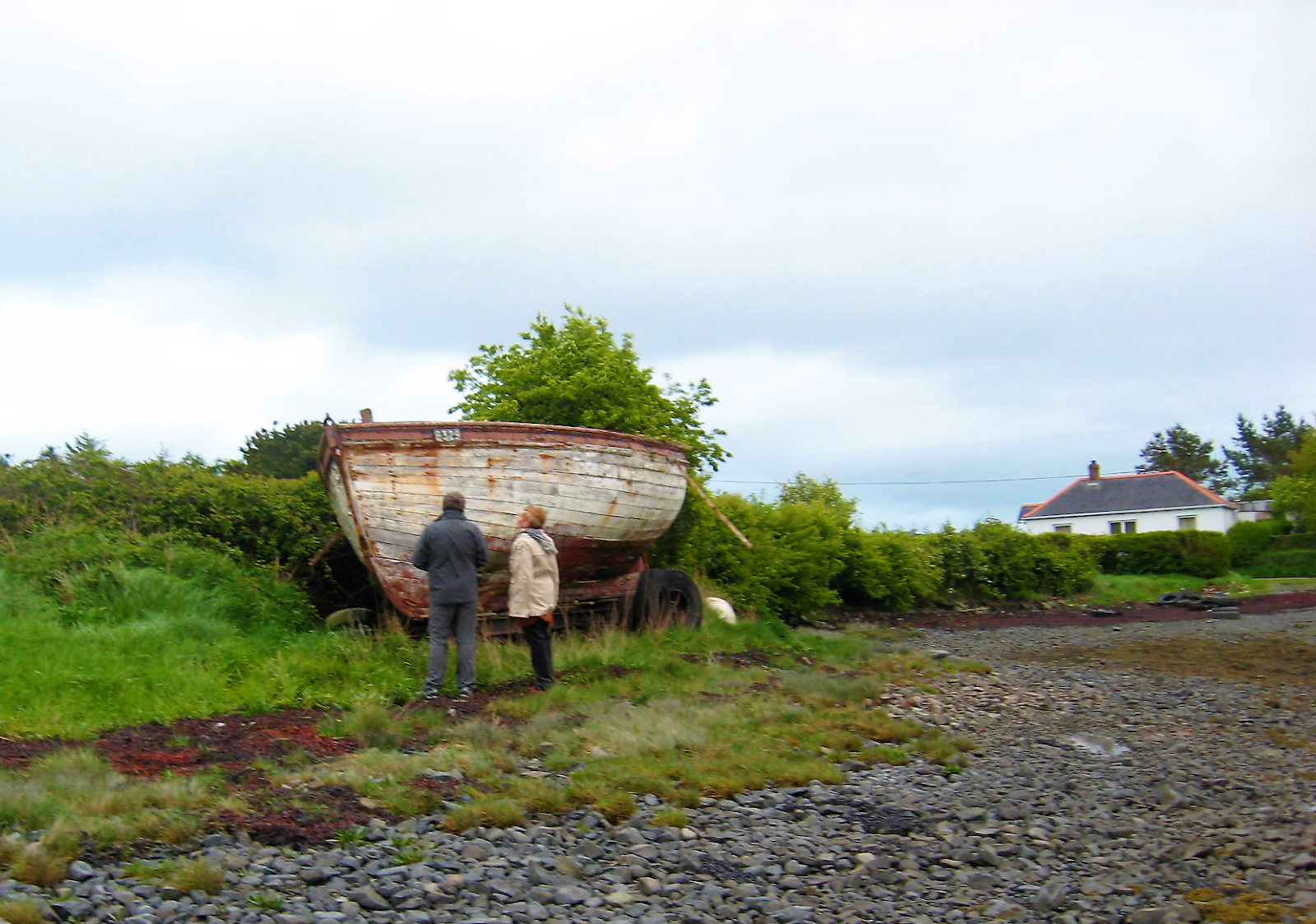 Merharg and Doloranda Pember, daughter of International Marathon Swimming Hall of Fame and International Swimming Hall of Fame dual inductee Mercedes Gleitze looking at a boat named after her mother in 1928.