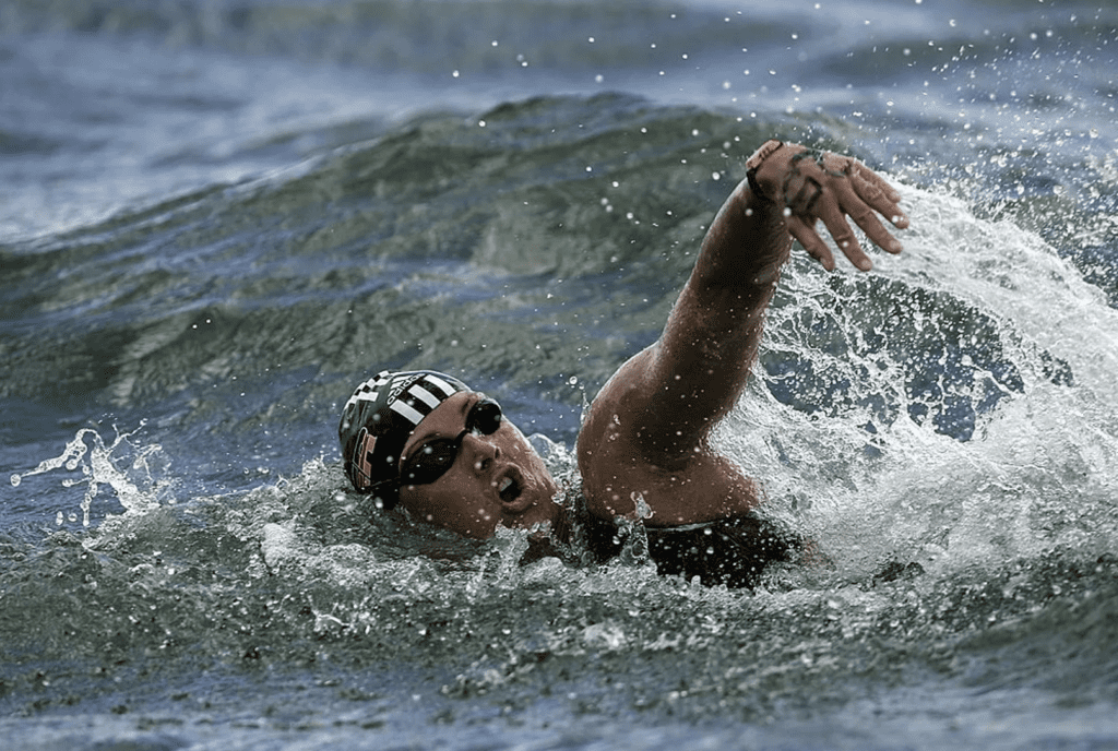 As Sharon Van Rouwendaal of the Netherlands emphatically slapped the finish pontoon to win the women’s Olympic 10K Marathon Swim on Copacabana Beach in Rio de Janeiro at the 2016 Rio Olympic Games, Aurélie Muller of France and Rachele Bruni of Italy sprinted down the finish chute.