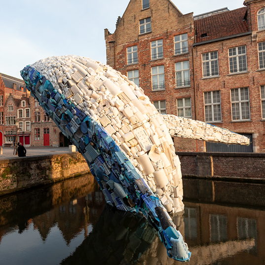 The Bruges whale kicks off its inaugural tour of Asia, starting off in Singapore. Doug Woodring, co-founder of Ocean Recovery Alliance and a recent International Marathon Swimming Hall of Fame Honor Administrator, is bringing Skyscraper, a four-story breaching whale sculpture made from 5 tons of recycled plastic. “It will be unveiled in Marina Bay Sands in Singapore on November 6th.