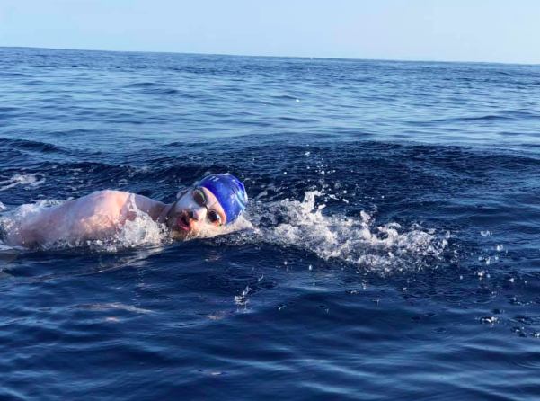 Cameron Bellamy swam a relatively straight line along the 150.4 km tangent from Barbados to St. Lucia over 56 hours 26 minutes [see here].