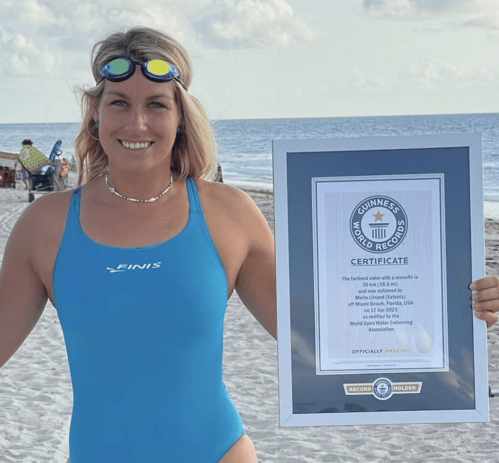 Merle Liivand, the record-setting mermaid swimmer, will compete in the FINA Olympic Marathon Swim Qualifier in Setúbal Bay, Portugal on June 19th.