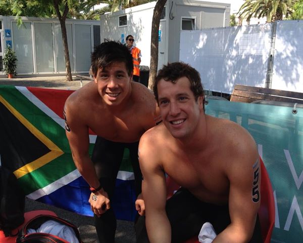 To understand how close the top competitors are at the 2013 FINA World Championships, we can look at Chad Ho of South Africa (shown with teammate Troy Prinsloo). The 2008 Olympian placed fourth in the 5 km only 1.5 seconds out from a bronze medal and eighth in the 10 km only 7 seconds out from a bronze medal. That is less than 10 seconds over nearly 3 hours of racing from earning to medals.