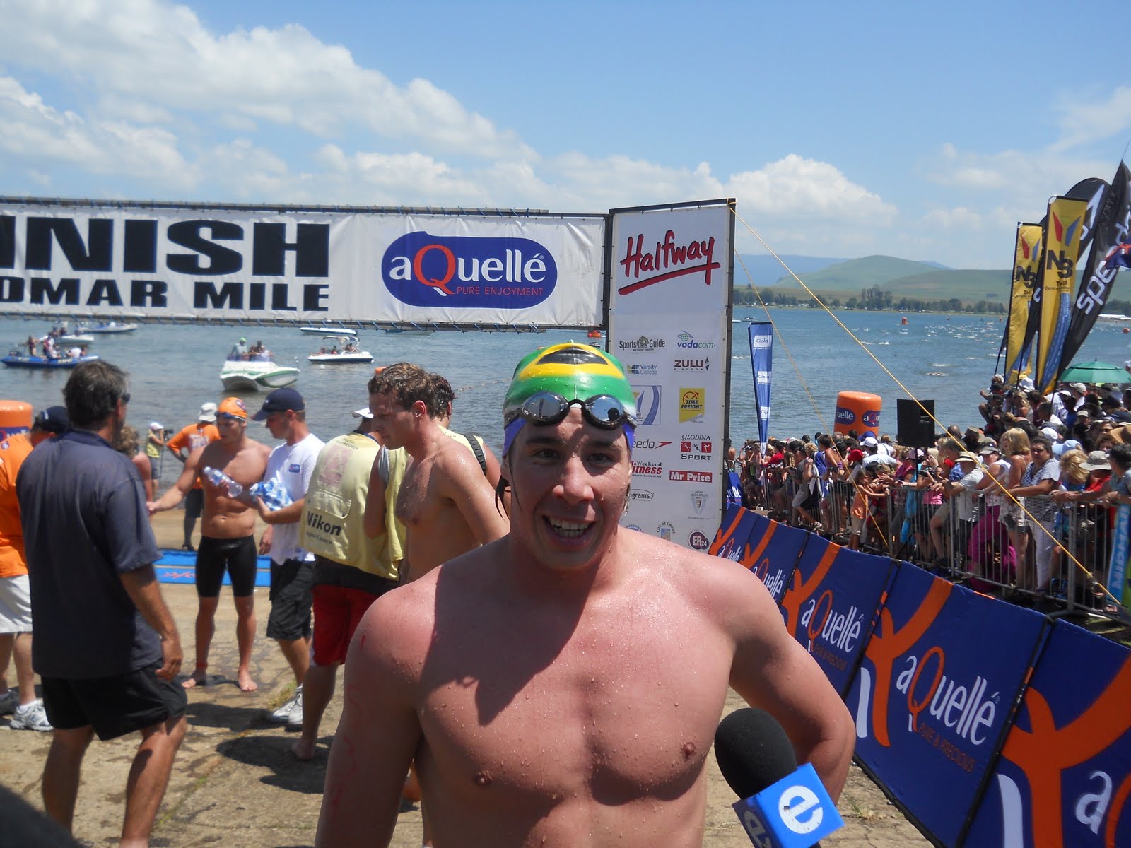 Chad held off David who was charging fast and won in front of an appreciative South African crowd for his second-straight victory at the prestigious Midmar Mile. Olympic gold medalist Penny Heynes interviews Chad immediately after his victory:
