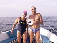 As a member of the Half Century Club, Chris has done the Catalina Channel (Catalina-to-mainland) in 10:30 in 2009, the Molokai Channel (Molokai-to-Oahu) in 12:53 in 2010, the Strait of Gibraltar (Spain-to-Morocco) in 2010 in 3:59, the Manhattan Island Marathon Swim in 8:05 in 2008, the Maui Channel (Maui-to-Lanai) in 4:31 in 2009, the Rottnest Channel Swim (mainland-to-Rottnest) in 2005 in 5:21, the Tampa Bay Marathon Swim in 8:49 in 2008 and the Pailolo Channel (Maui-to-Molokai) in 5:41 in 2009.