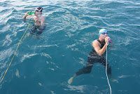 Chris Palfrey and Christie Leet completed their 21K swim from Hamilton to the Queensland mainland among the Australian Whitsunday group of islands.
