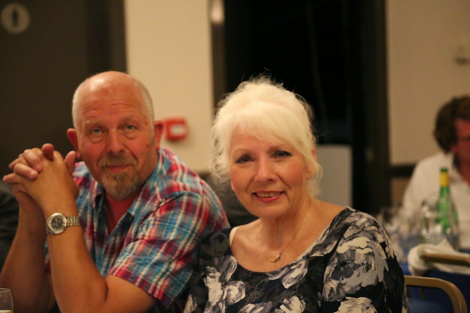 Photo courtesy of Ram Barkai shows Jackie Cobell with her husband at the 2014 Global Open Water Swimming Conference on the Isle of Bute in Scotland.