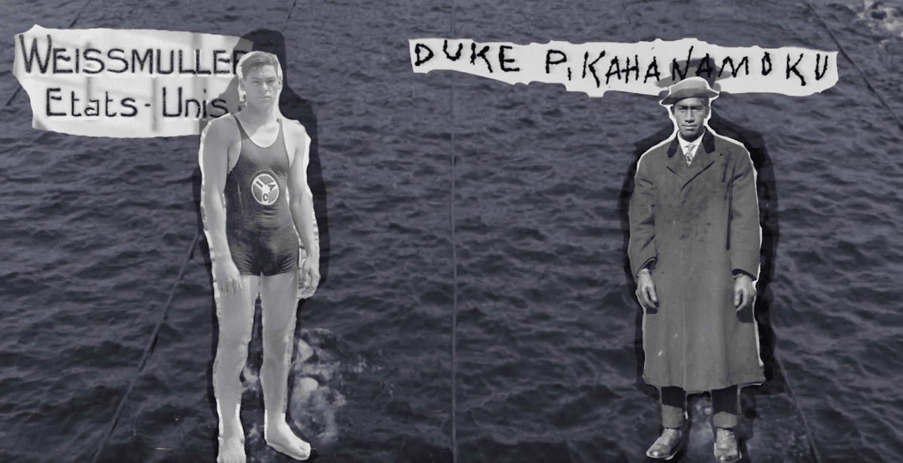There was a changing of the guard in freestyle swimming at the 1924 Paris Olympic Games where Johnny Weissmuller of Illinois took the mantle from the aging Duke Kahanamoku of Hawaii. The sprint freestyle race at the 1924 Amsterdam Olympics between Kahamamoku and Weissmuller is shown here.