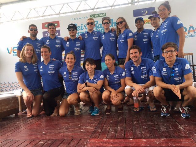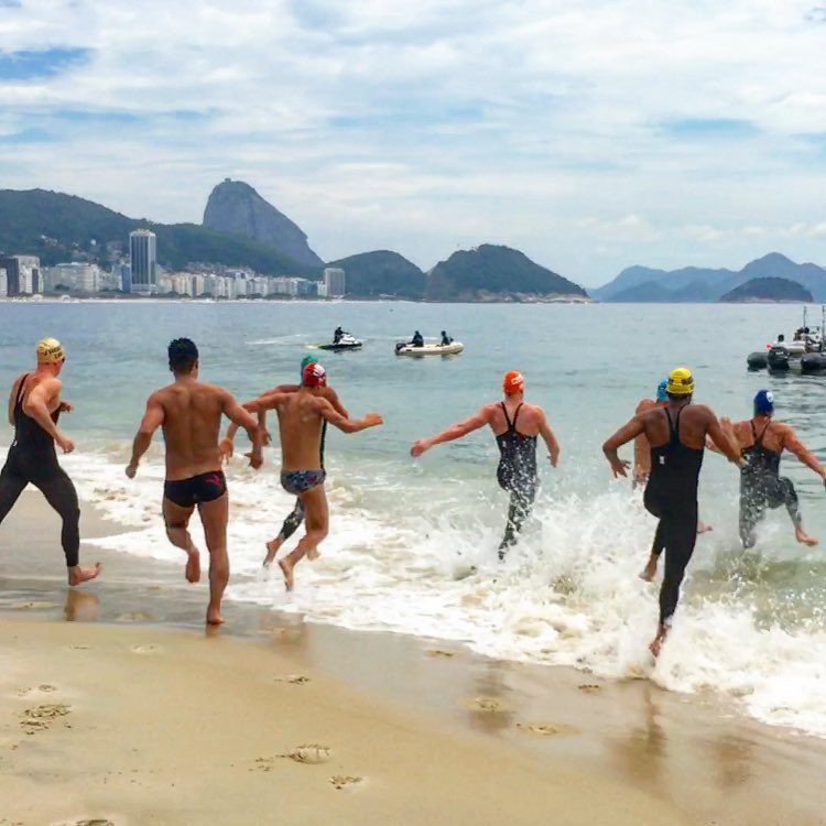 Before the grid race, the athletes conducted a musical demo with Rio de Janeiro’s biggest charity to benefit the favelas. The locals make their musical instruments out of garbage and the elite swimmers from around the world played them on the beach at the start before the grid race.