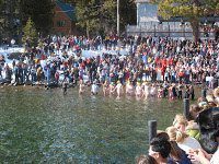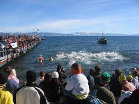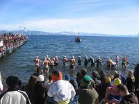 The 250-yard swim to the end of the pier and back is usually held in 39°F (4°C) water at 6229-feet (1898-meter) altitude in Carnelian Bay in north Lake Tahoe.