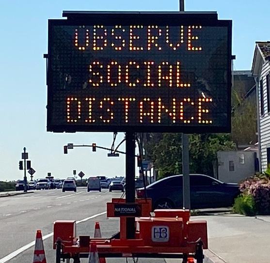 Highway signs above informs motorists of the closure of the nearly 13 km of beachfront and pier in Huntington Beach in Southern California.