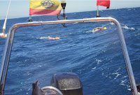 But there was another reason for their urgency – the currents shifted and the quartet found themselves swimming into a 2-knot currents. For 30 minutes, they made no forward (southerly) progress and were moving eastward towards Egypt, a far cry and several countries off-course from their intended finish in Morocco.