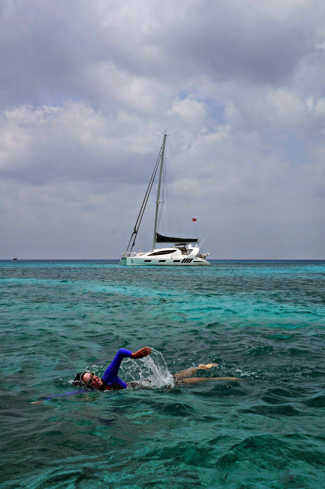 Day 5: April 23 (19 14.14N 081 27.53W) – 6.21 miles swum in 4 hours, 60.4m covered in 1-2′ waves with 6-8 knot winds – “time zone change, no current, slow day?
